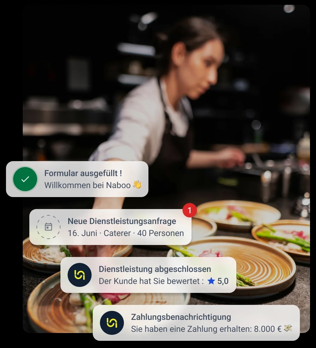 Sie sind ein Eventprofi und möchten Ihr Geschäft ausbauen? Treten Sie Naboo bei und werden Sie für über 5000 Unternehmenskunden in ganz Europa sichtbar!